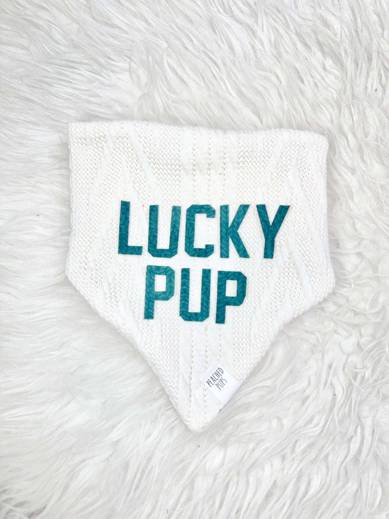 Let your dog’s charm shine with the Lucky Pup bandana, perfect for celebrating St. Patrick’s Day in style! Crafted from a cozy, textured sweater material, this bandana adds a touch of warmth and a whole lot of festive flair. The bold green lettering pops against the crisp white fabric, making it a standout accessory for parades, parties, or casual strolls.
