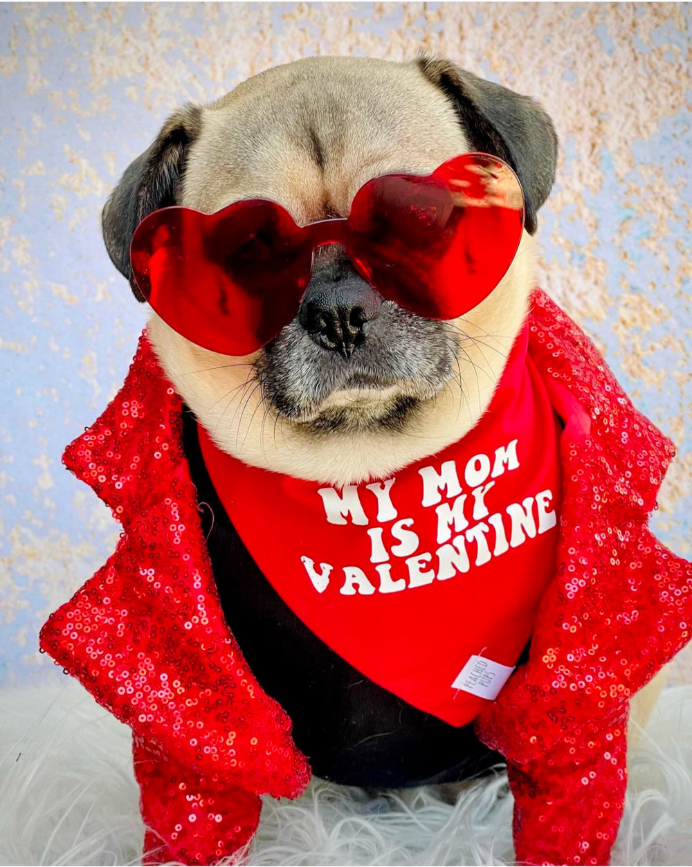 Order now and let your pet join in the celebration of love with the "My Mom Is My Valentine" Bandana – an ideal choice for pet owners seeking a heartwarming accessory that allows them to share the love with their furry valentine in style.