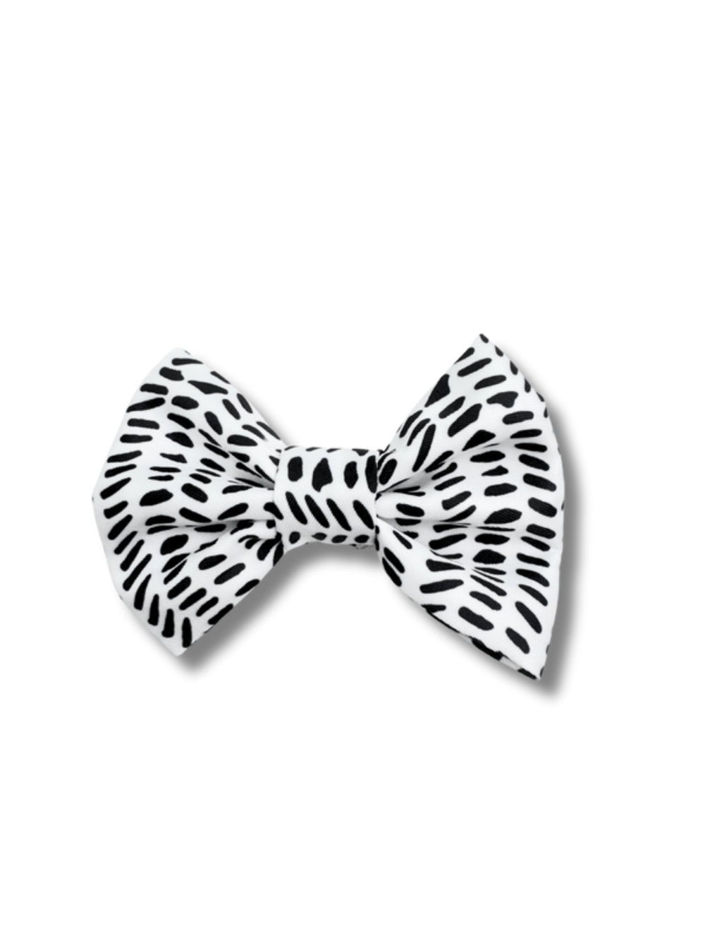 Our Hair Bows add a touch of whimsy to your pup's appearance. These bows attach to your pup's fur with a small alligator clip, ensuring they stay in place during your dog's playful adventures. If you prefer the hair bow to go over the collar instead, simply leave us a note at checkout, and we'll provide an elastic attachment.