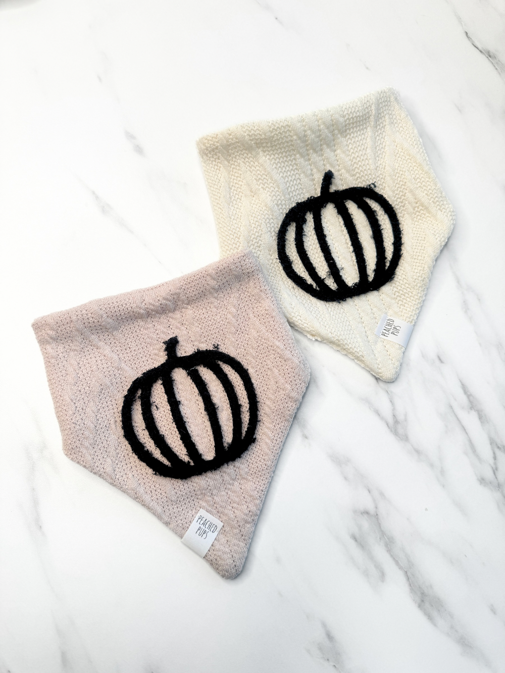 Cozy Fuzzy Pumpkin Halloween Dog Bandana by Peached Pups